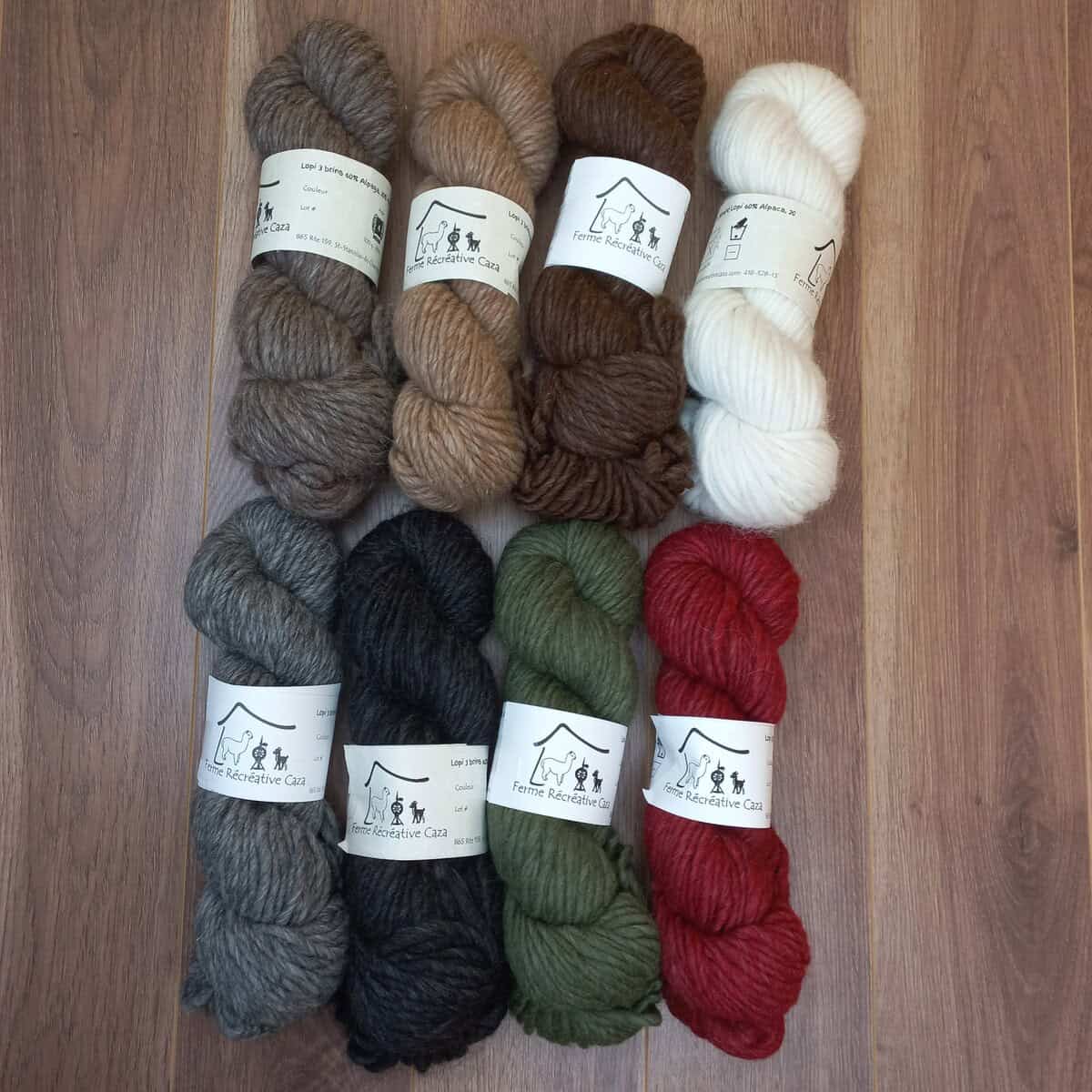 Composition du fil à tricoter: 60 % d’alpaga, 20 % de mérinos fin et 20 % de nylon